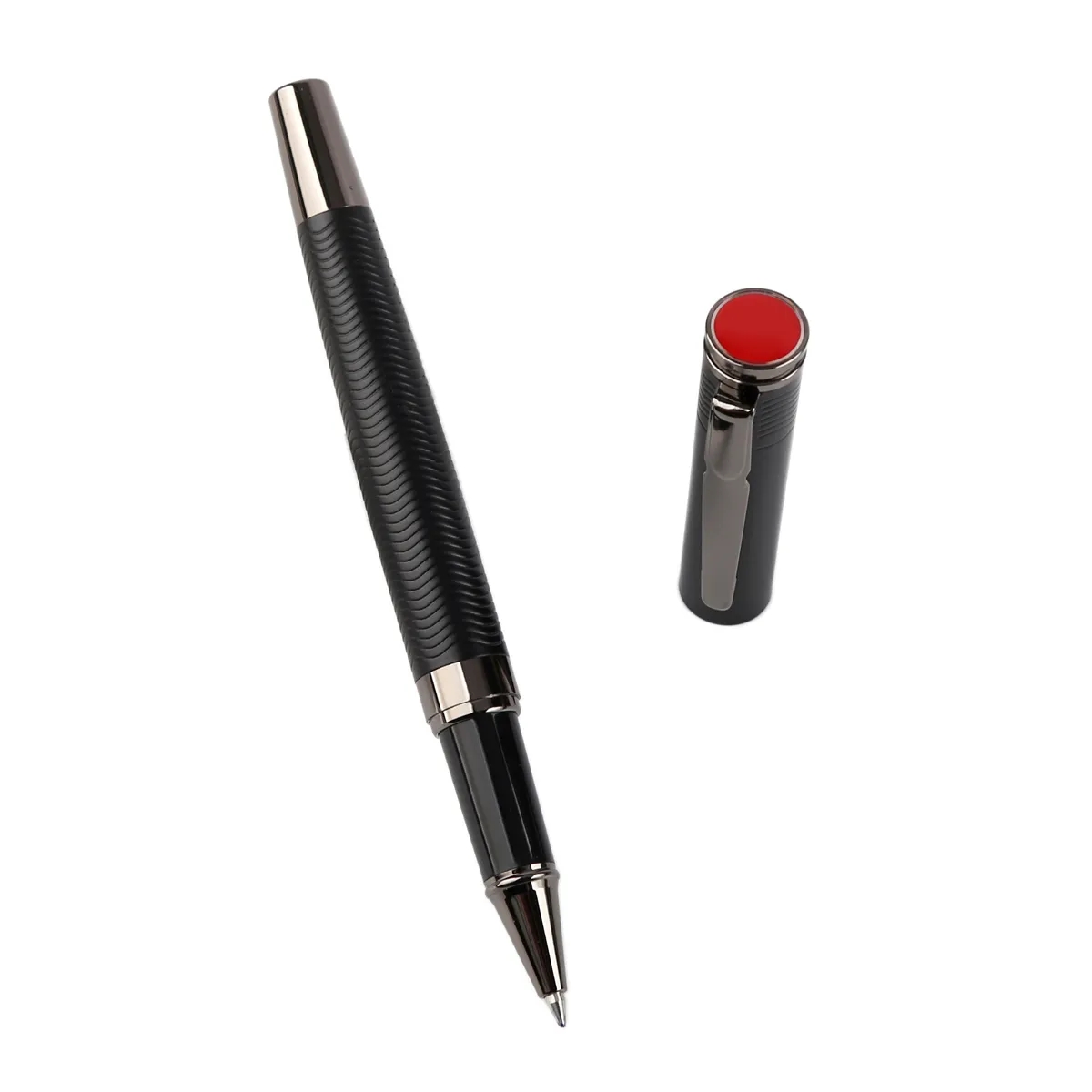 Made of high-quality metal material and measured 5.47*0.47*0.47 inches, these ballpoint Pens are comfortable and durable, they include the traditional cap design. Long-lasting, refillable ink for reliable writing, the ball tip of the ball is smooth, and it is not easy to break the ink. Cap design prevents the pen tip from inking your pocket. Durable clip keeps your pen on the book, clipboard, notebook. Hand feeling good, portable for fitting in pocket. Silver and black colors for your choice. Customize your logo or brand name on the front to boost your brand awareness!